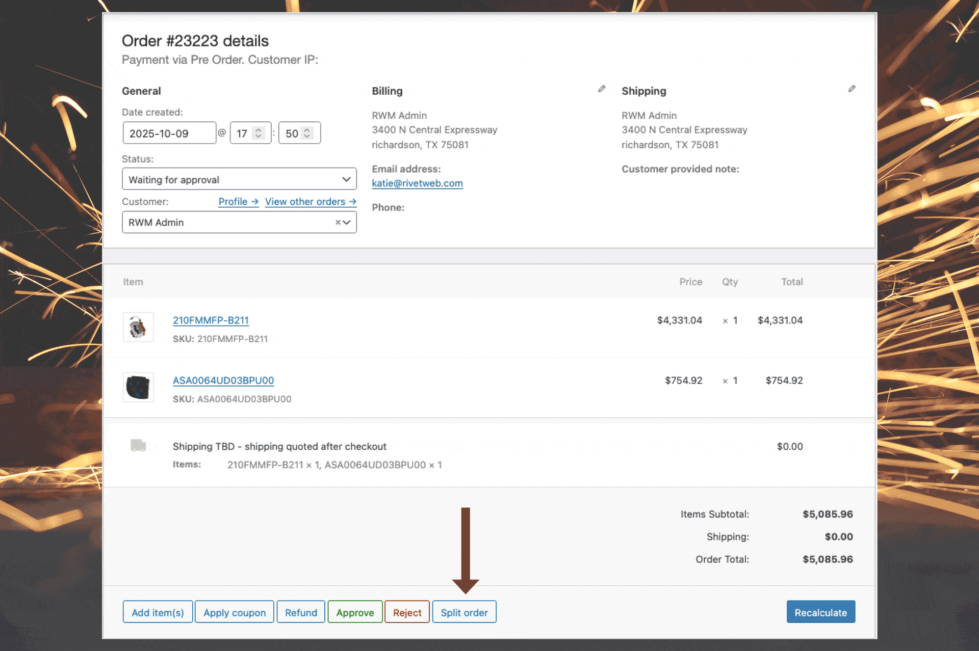 RWM’s Split Order Fulfillment Workflow adds controlled partial approvals to your checkout and order management process, so teams can release what’s ready, keep the rest pending, and maintain clean records—without a full rebuild.